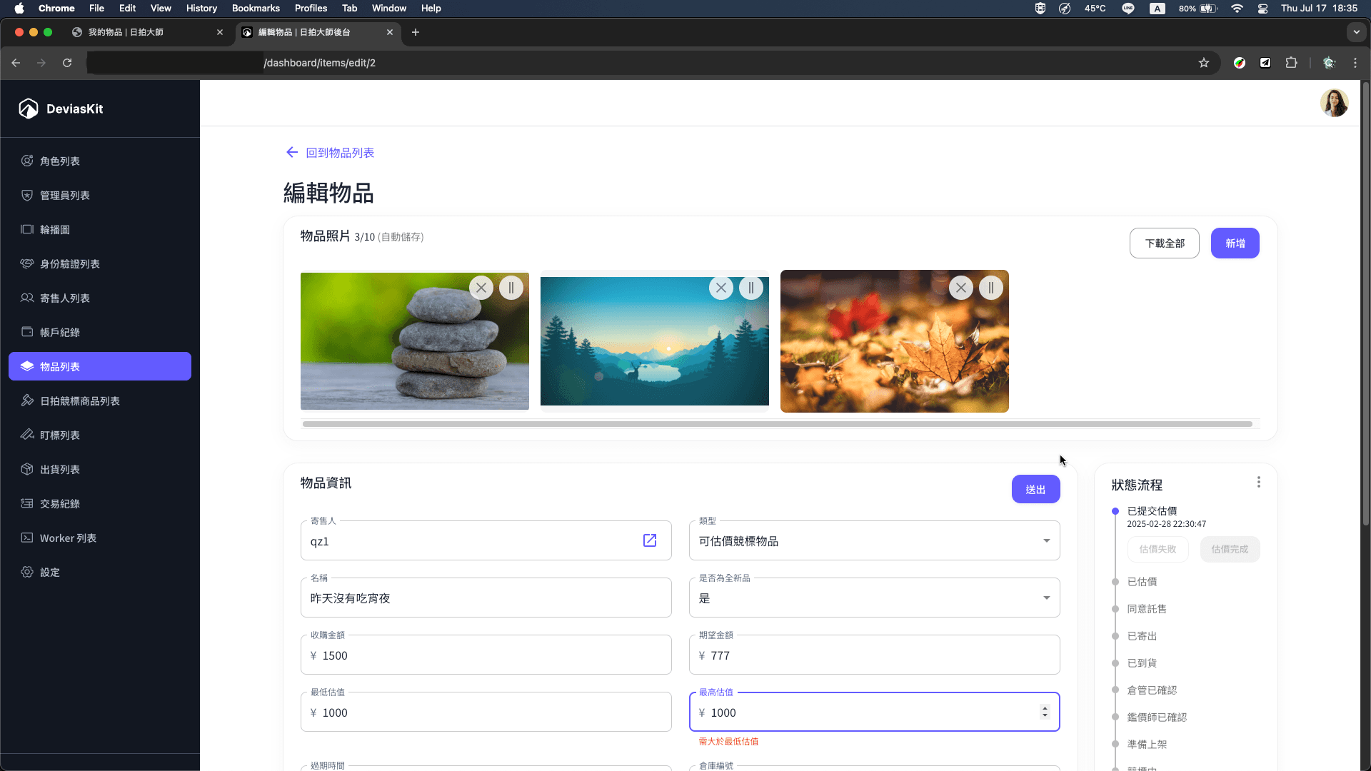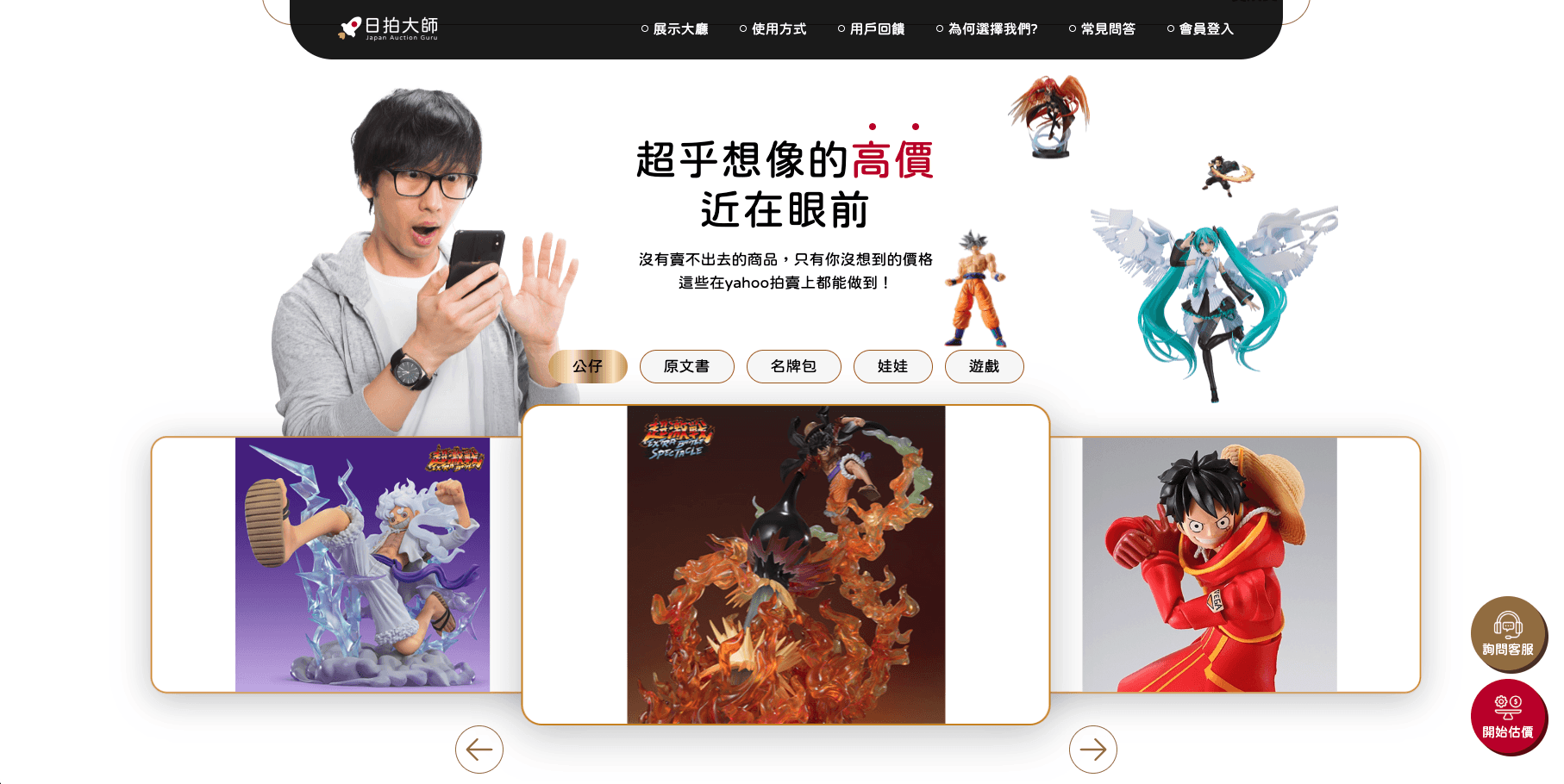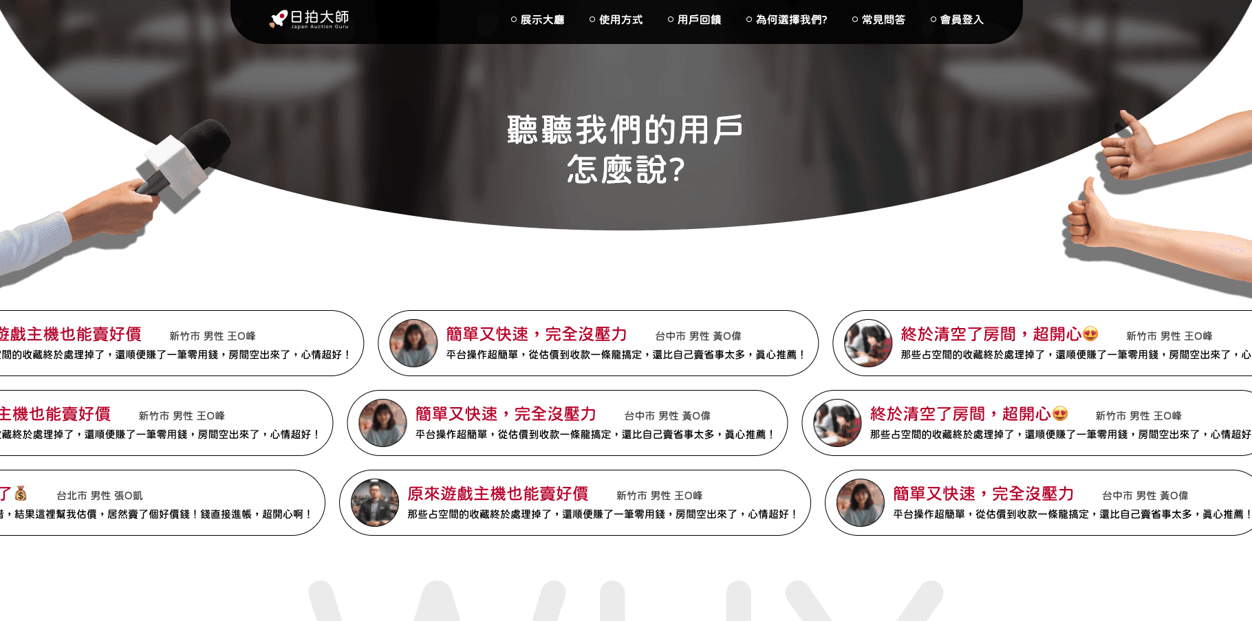 前台部分:日拍大師是一個能讓身在台灣的賣家,將自己手中的物品在行情更好的日本拍賣中賣出高價的託售平台。這個案子從競品分析、人物誌到LOGO設計、網頁整體設計都由Sylvia一手包辦,Qz同樣是負責精確的還原出設計稿的細節與完美的動畫效果。後台部分:由Qz與業主溝通需求並做出符合使用者經驗的後台系統。